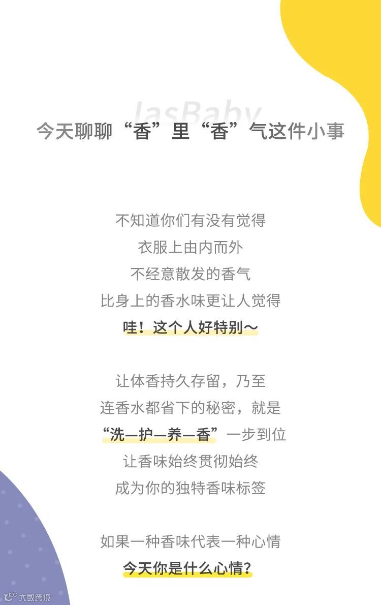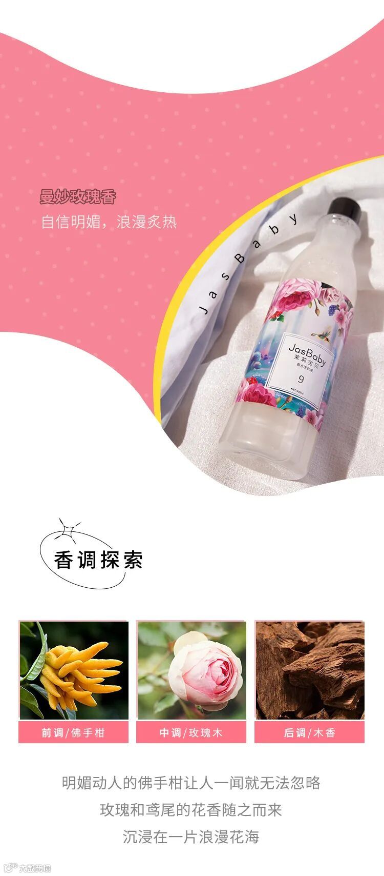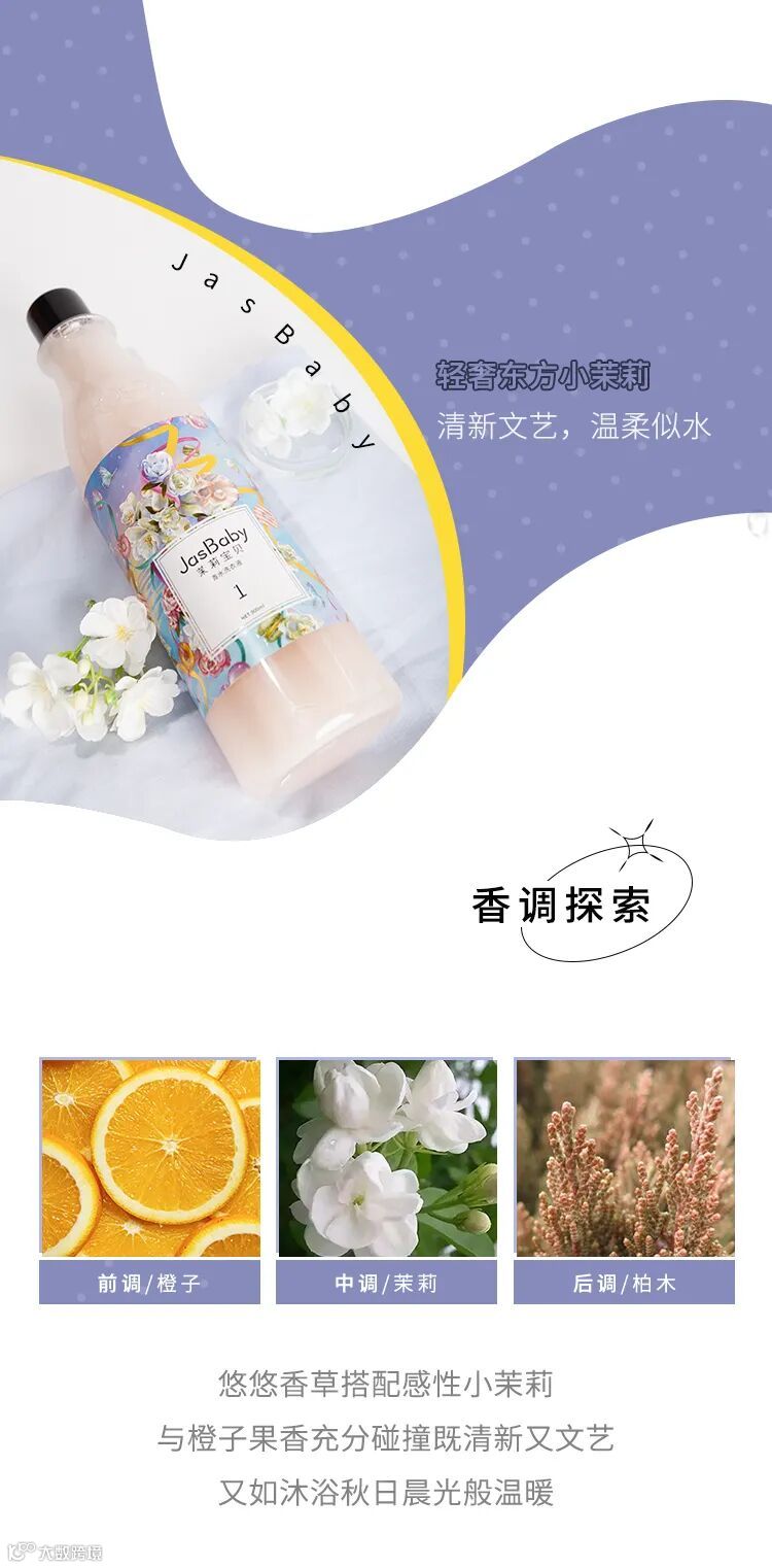 茉莉宝贝香氛系列洗护,源自法国的浪漫呵护。选用欧洲原装进口的香氛植物精油,在使用的时候让人感觉到暗香疏影,异香扑鼻,独特的香型让洗护更快乐,被年轻时尚人群誉为洗护品类的轻奢。走路带香让他念念不忘。