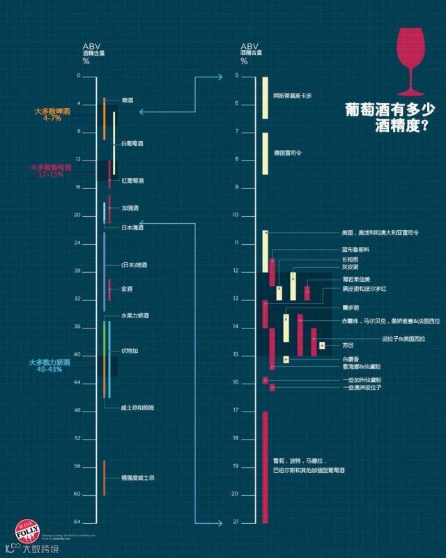 葡萄酒的酒精度,是由葡萄汁自然发酵而成。世界葡萄酒协会规定葡萄酒的酒精度数最低要等于或大于7.0%(vol)但对于最高的自然发酵酒度则没有严格的限制,一般最高的葡萄酒为16-17度。