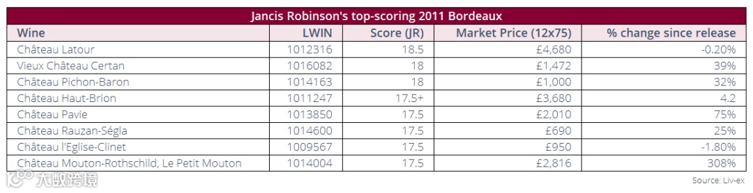 Jancis Robinson评 “值得购买” 的波尔多2011年份酒