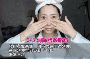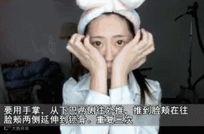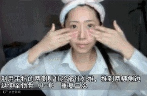 往下延伸到脸颊两侧一直推到锁骨,重复三次