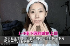 双手轻压下巴,沿着唇周往上推到鼻子下方,轻压一次,重复三次