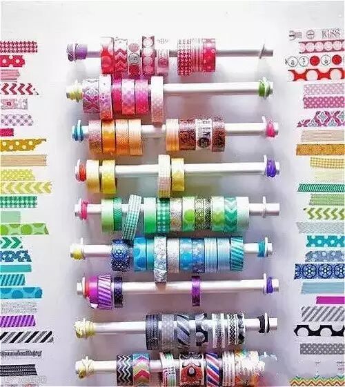 毛巾、浴巾、包包、围巾一些小东西,平时很难整理,把PVC管子钉在墙上,然后把这些小物件分类,既美观又一目了然!