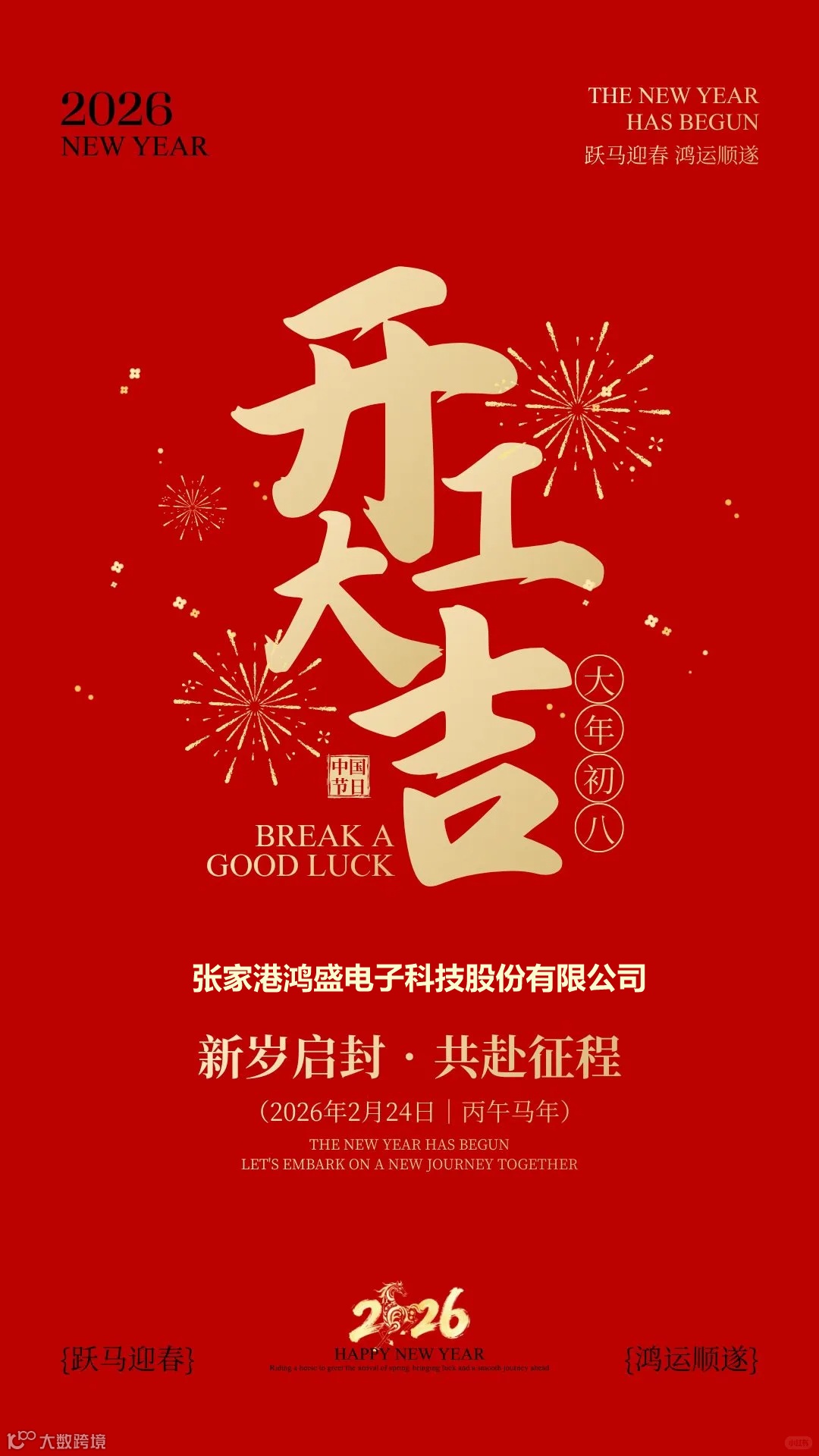 张家港鸿盛电子科技股份有限公司,初八正式开工啦!✅