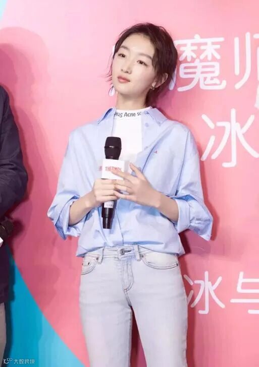 将衬衫的扣子全部解开,在下摆打个结,可以把衬衫往肩膀下面拉一拉,塑造成斜肩的效果,彰显你的时尚态度~