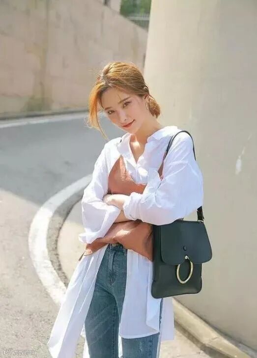 吊带这件单品只有在最热的盛夏在可以穿吗?白色衬衫搭配粉色吊带,增强整体的层次感,而且看起来更温柔哦~