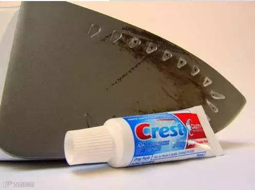 电熨斗用久了,会在底部留下一层糊锈,可在电熨斗底部抹上少许牙膏,轻轻擦拭,即可除去。