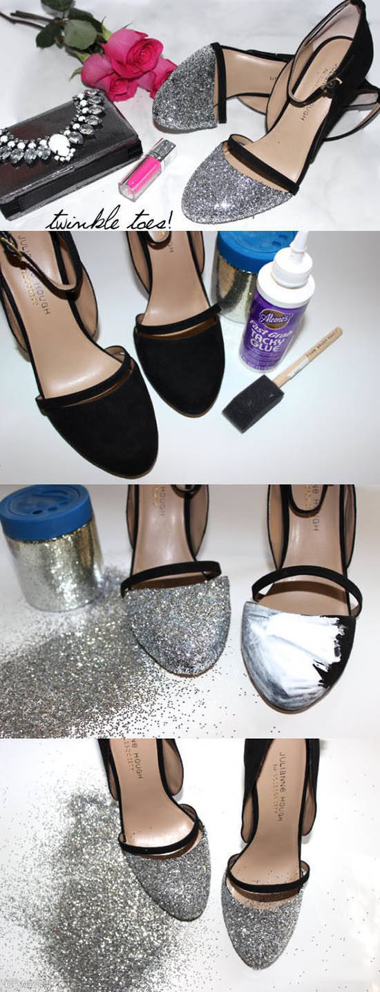 落后的鞋子撒上金粉立马变时尚,聚会也可以穿哦!