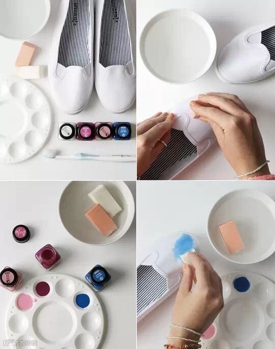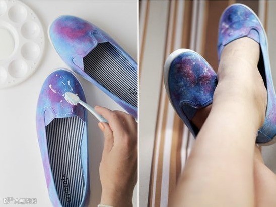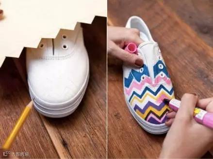 用颜料给纯色鞋子加上花纹