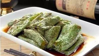 材料:青椒5个、大蒜3瓣,醋、芝麻油、生抽适量