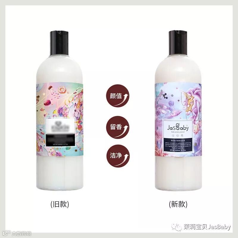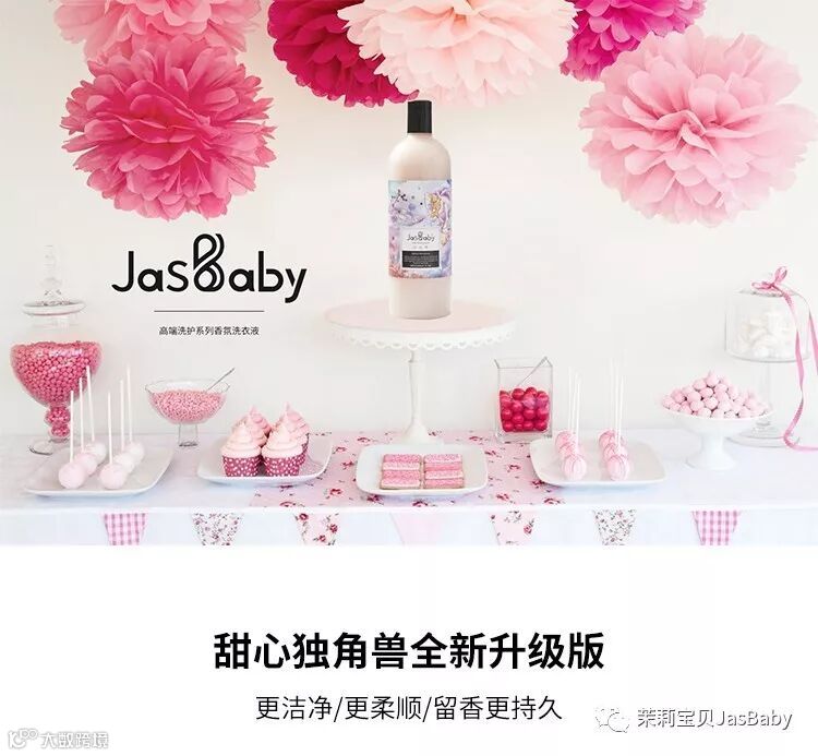 在过去的一年里,甜心独角兽卖出了10W+瓶,作为香氛洗衣液的销售头牌,粉丝们还给这个洗衣液起了一个爱称“洗衣液里的祖玛珑”。最畅销的一款产品,我们将它做了独立升级。并且启用全新的品牌名称和logo——茉莉宝贝JasBaby,以此来感谢粉丝们的热爱。
