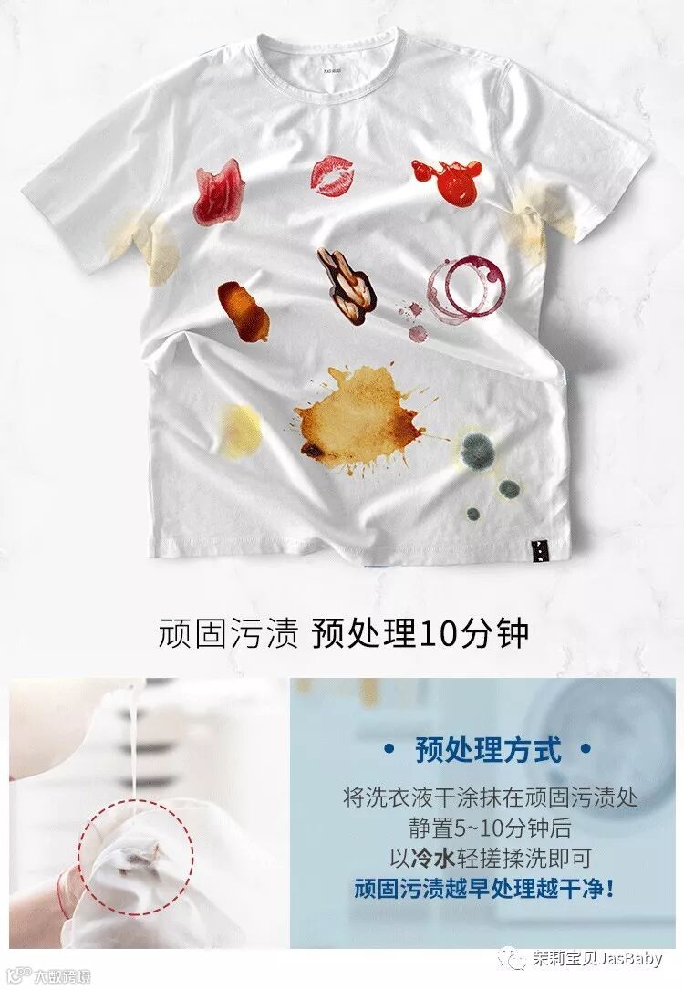 日常的许多污渍都可以轻松去除,预处理十分钟,能够有效去除多种顽固污渍,像口红、粉底、血渍这种顽固污渍也是轻而易举。