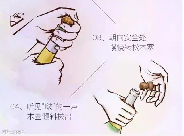 注意:起泡酒里的内部气压很高,比汽车轮胎里的气压还要高2-3倍,所以在开瓶的时候要特别小心,除非是用于喷香槟搞庆祝的场合