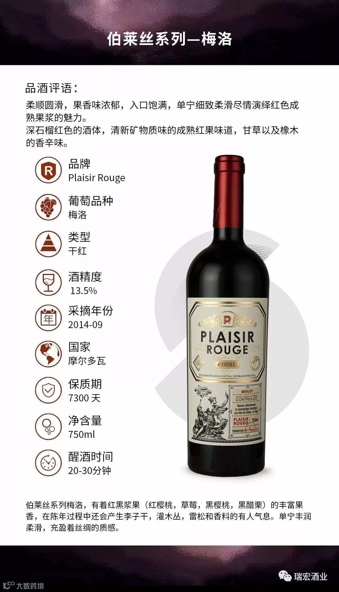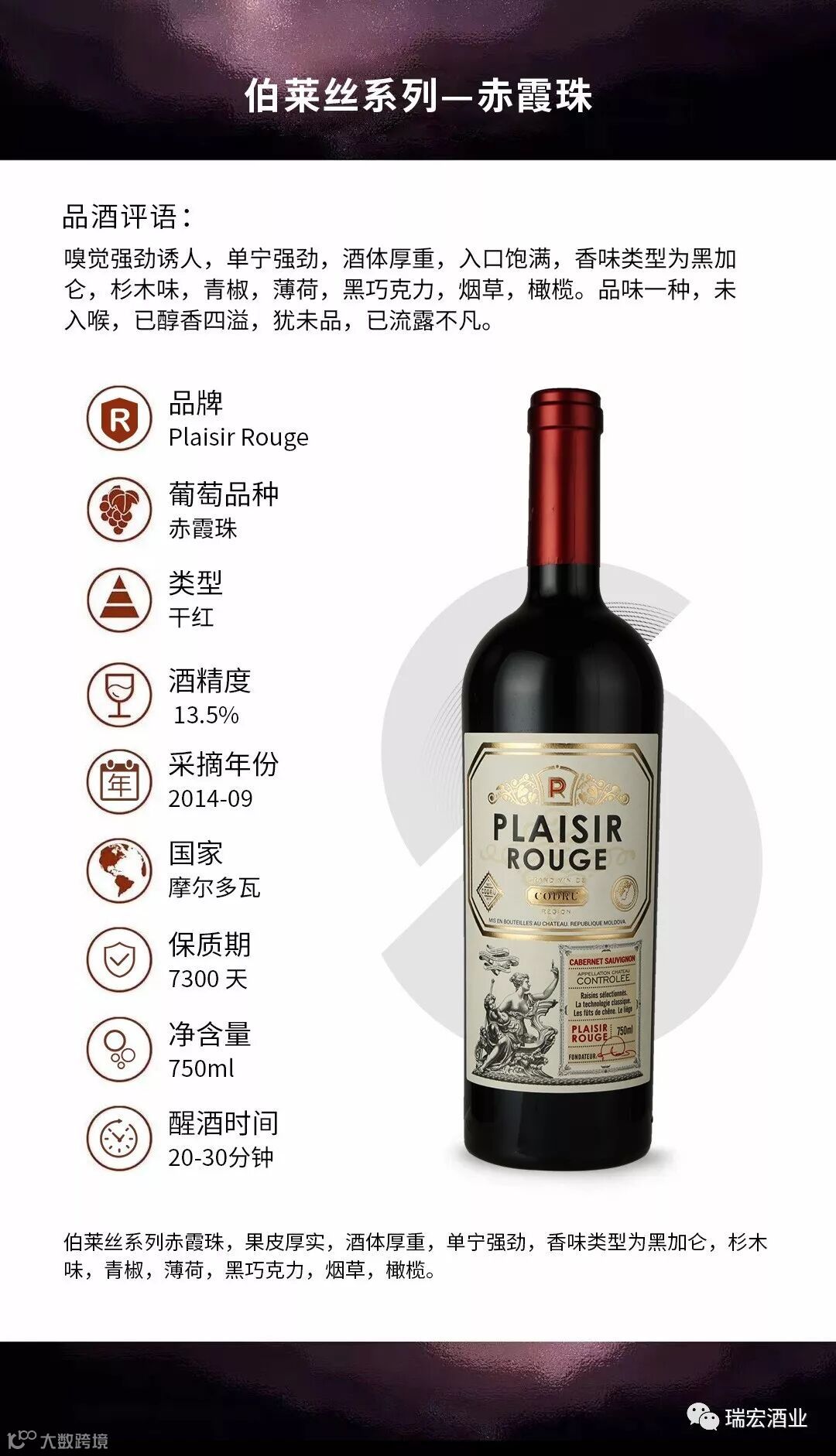 1,悠久的种植和酿造历史 2,30-40年的平均树龄3,严格的AOC酿制规定4,正宗原瓶原装摩尔多瓦进口