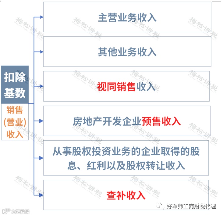 业务招待费扣除基数的销售(营业)收入细分为以下六种: