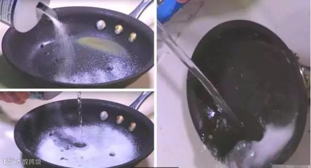 ▼9. 油锅上的油脂和烧焦物最不好清理,用大量盐和少量的水浸泡十分钟,就可以干净溜溜。
