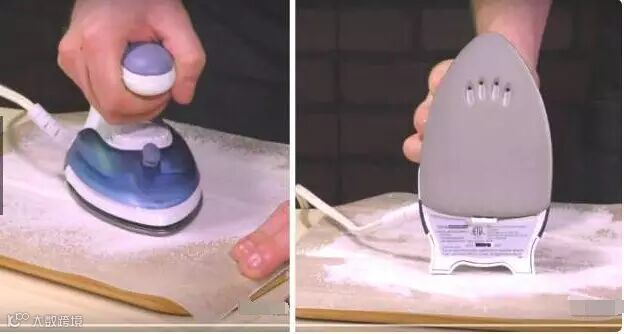 ▼6. 清洁熨斗的话,只要在木板上放一层羊皮纸,撒上盐后开启熨斗,让两者受热一分钟即可。