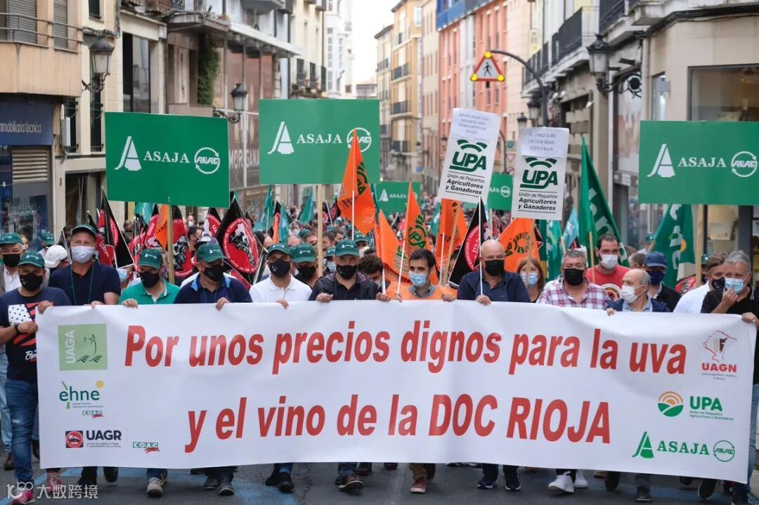 近日,在西班牙约有一千名葡萄农参加了由里奥哈产区所有农业团体组织的示威活动,要求对该产区的葡萄给予合理的收购价格:“我们作为葡萄种植者生产的是优质产品,理应得到相应的报酬。”