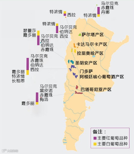 阿根廷根据地理位置从北到南分为三个葡萄酒产区: