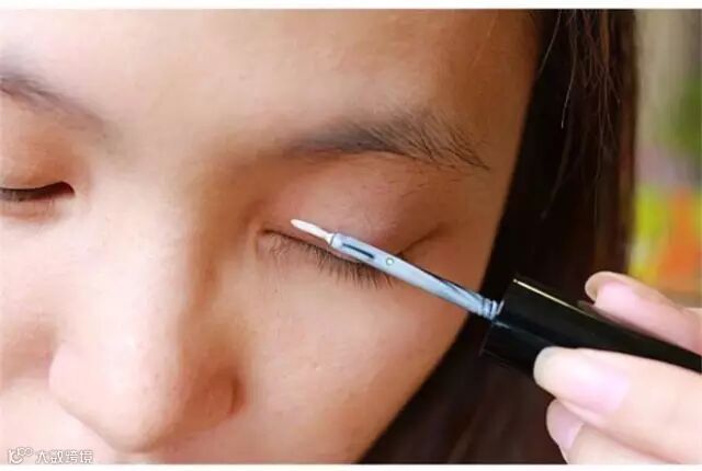 先找到自己的隐藏的双眼皮线,闭上眼睛轻轻涂上一道胶水。