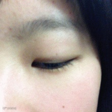 等到胶水半干的时候,用小棒压住双眼皮线上方,慢慢睁开眼睛,之后要尽量保持眼睛睁开不眨眼,一直到胶水全干为止!