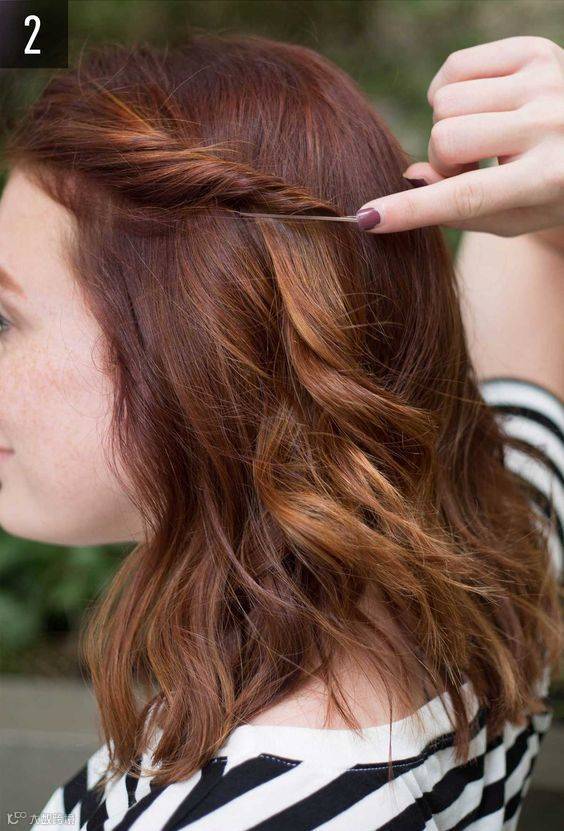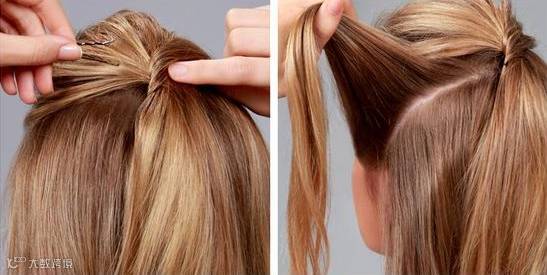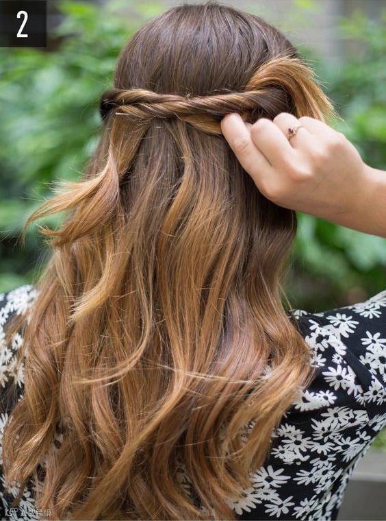 2.从散着的头发里拿出一小缕绕过来