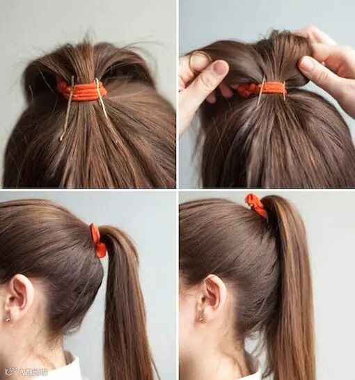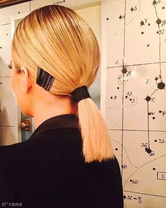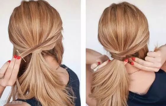扎马尾经常软塌塌的,换成高马尾整个人都有精神多了!只用将发卡固定在皮筋上就行~
