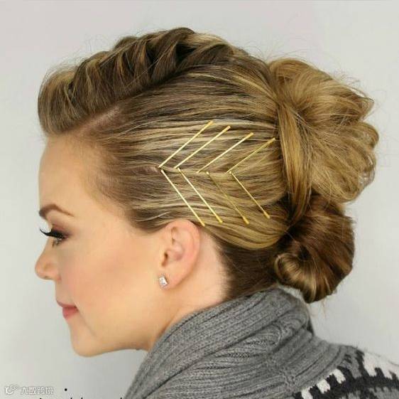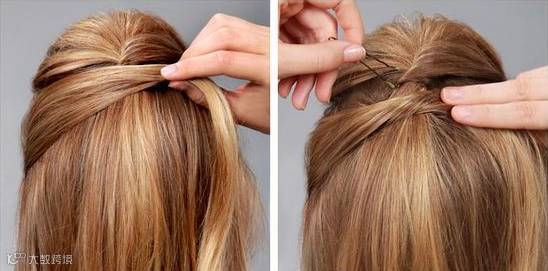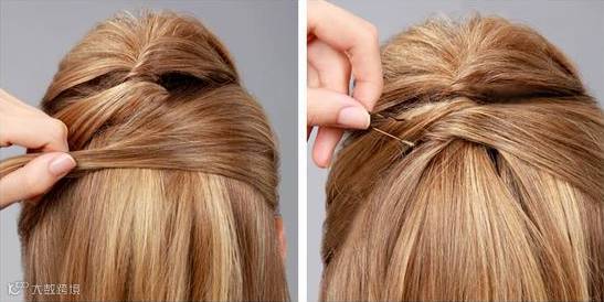 从头发两端各分出一小缕头发,用发卡固定住,重合的部分再用两个发卡平行固定住就行了~很有女神范哦