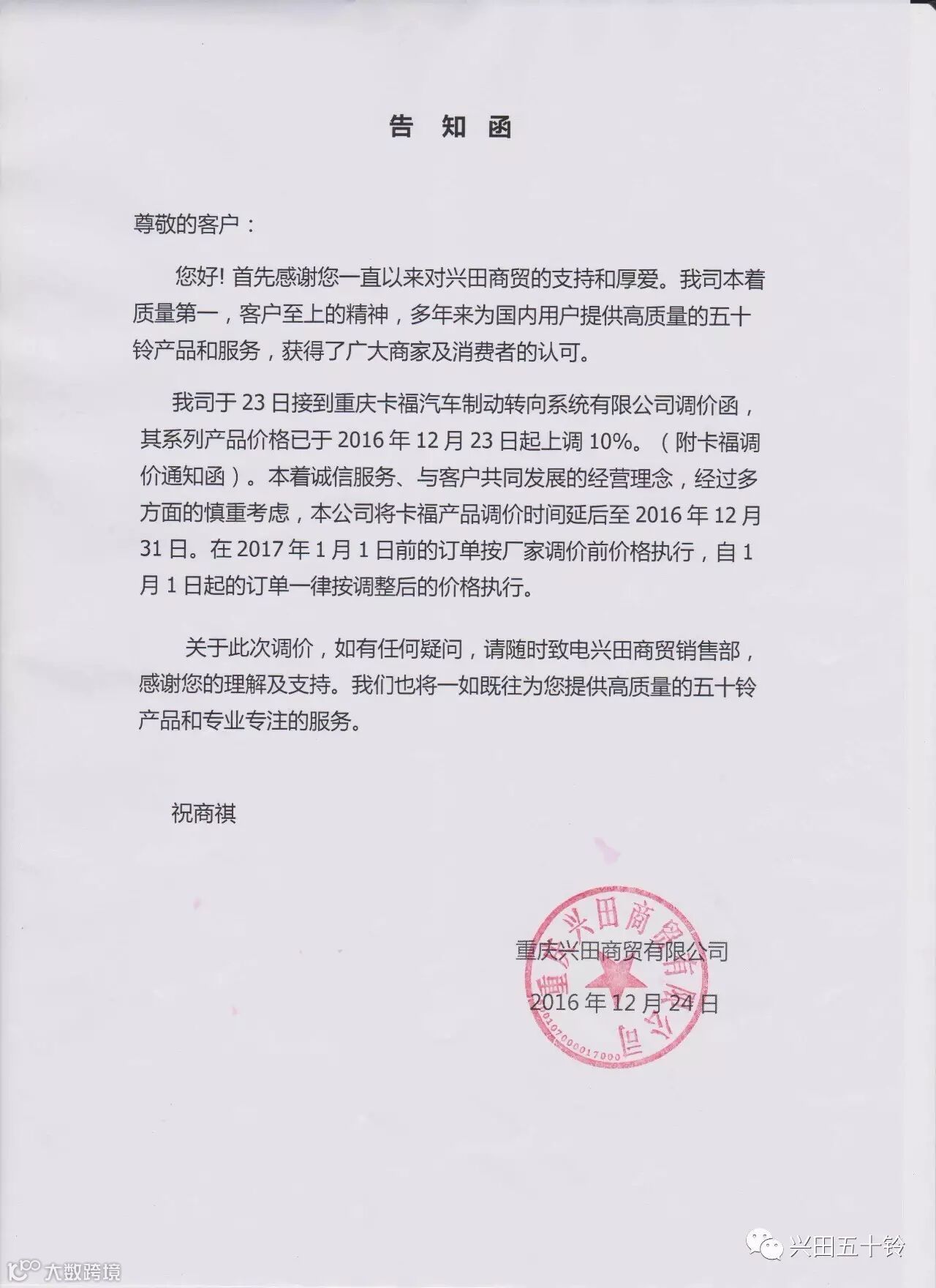 重要通知!兴田部分商品调价通知!