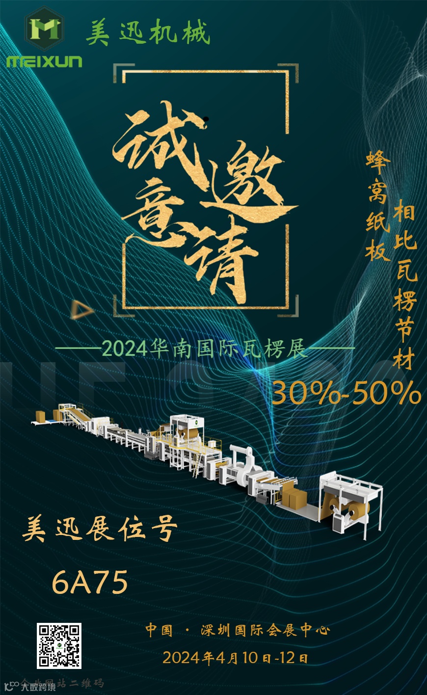 在万众瞩目的2024华南国际瓦楞展上,美迅机械将携薄蜂窝纸板生产解决方案精彩亮相6A75展位,期待与您共同交流第三代全自动高速蜂窝纸板/纸芯生产线的技术优势,探讨瓦楞包装行业之外的新蓝海、新方向,打造存量时代下的增量市场。