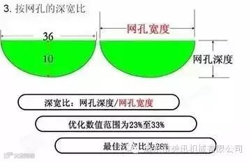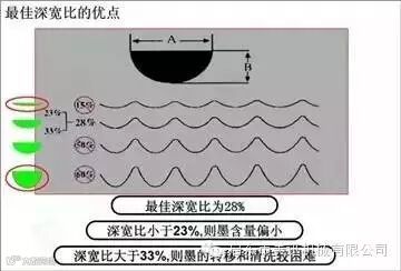由于宽深比不同,上墨量是有区别的,所以对油墨的转移和清洗也有很大区别,如果宽深比大于33%清洗比较困难;如果宽深比较小,那么上墨就少,印刷的鲜艳度和层次感就会非常差。