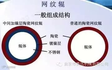 网纹辊的组成机构一般分为中间加镍层陶瓷网纹辊和普通的陶瓷网纹辊两种,两者区别参见下图: