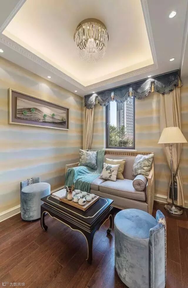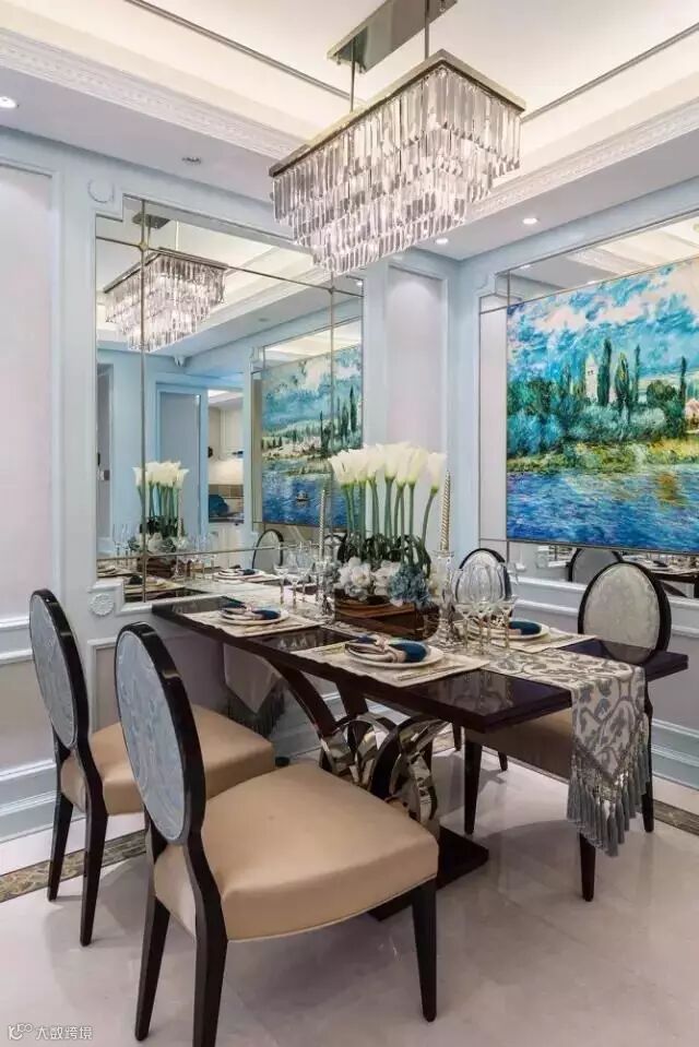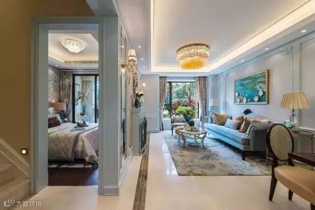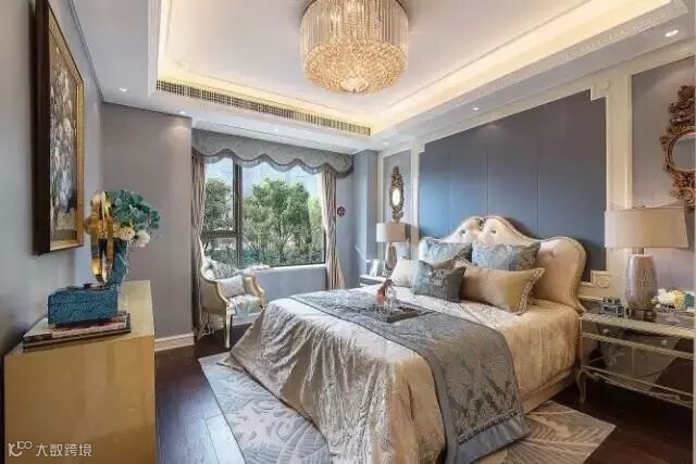 设计采用“浪漫法式”风格,以蓝灰色作为空间主色调,米色金色点缀其中。通过材质与色彩的完美搭配,打造出一个富有“现代都市”风的样板空间。墙面的镜面处理;顶面细腻的收口关系;地面丰富的铜质细节;璀璨的水晶吊灯;莫奈的睡莲......一切都彰显了法式空间的品味,营造出了浪漫的法式意境。