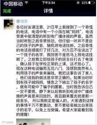 据说这是电话骗子的最新骗术,各位爸妈尤其要警惕。无独有偶,最近也有其他家长类似的警示: