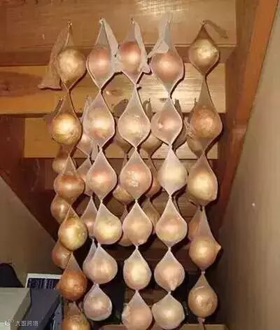 把洋葱放进不用的丝袜里面,然后挂起来,放半年也没事哦!