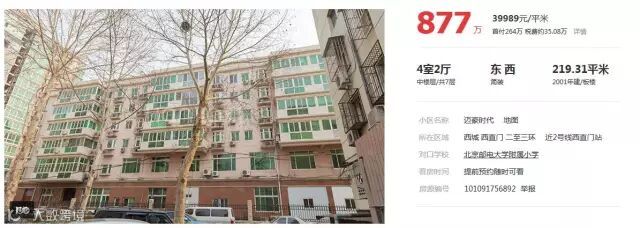 那非学区二手房就更不值钱了,比如这套2001年房龄的,单价只有39989元/平米。
