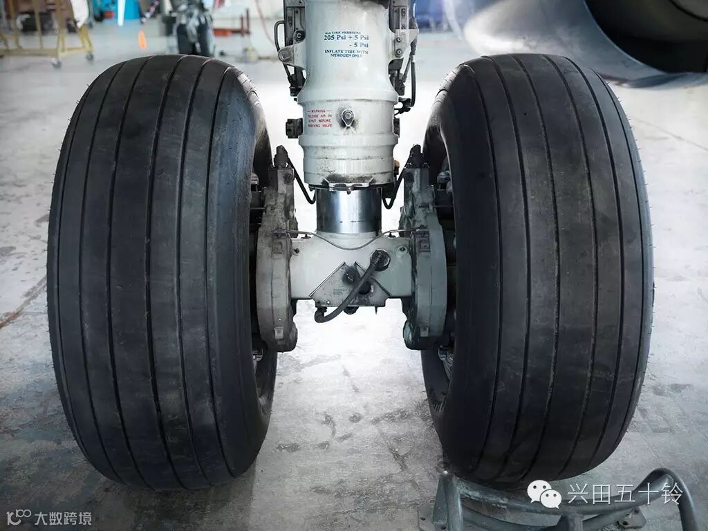 其实飞机轮胎所使用的材料与汽车轮胎基本相同,主要区别则来自飞机轮胎采用了更高强度的橡胶化合物,以至于飞机轮胎能被充气到200磅/平方英寸的气压,这相当于汽车轮胎气压的6倍。而正是这超高的气压,才让飞机轮胎有足够的强度来应对飞机降落时的冲击力。