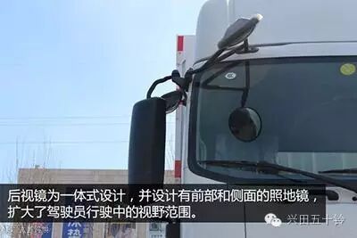该款车的后视镜为一体式设计,并设计有前部和侧面的照地镜,扩大了驾驶员行驶中的视野范围。