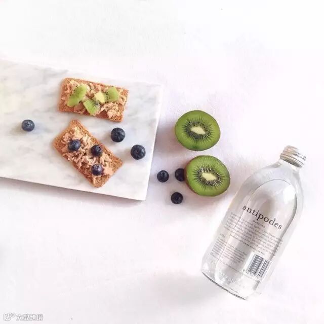 玻璃瓶装的 antipodes 水真是冷淡得很,和食物搭配在一起倒也是极好。