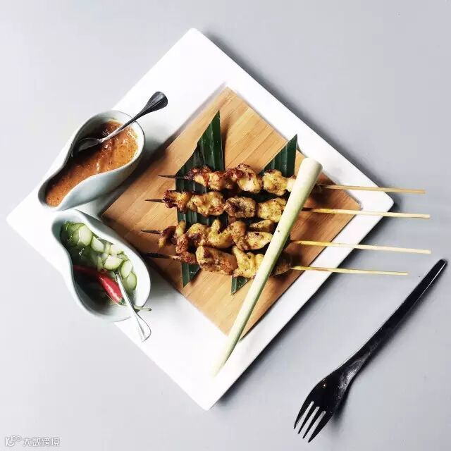 这一张,叉子和餐盘是保持平行的,就连那几只竹签我也尽可能的调成了平行状态。