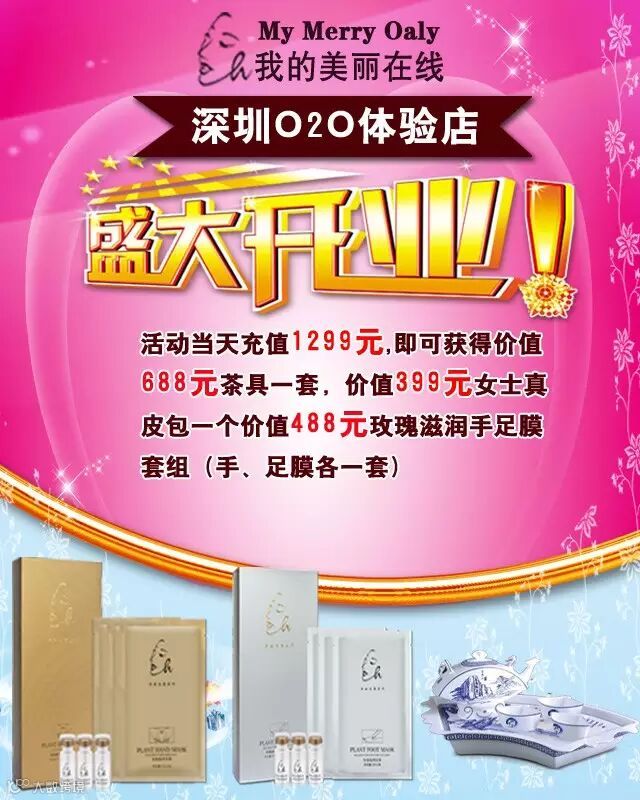 二、开业当天现场充值成为My Merry Oaly我的美丽在线·深圳O2O体验店的会员享有以下优惠: