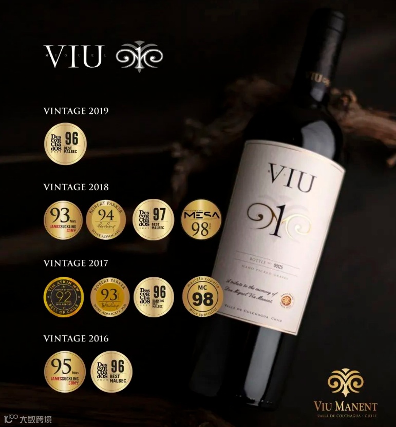 威玛一号(Viu 1),是一款限量版的顶级佳酿,每一瓶都有独立的编码,独一无二。每颗酿酒葡萄都是优中选优,全部来自于威玛圣卡洛斯园4号地(San Carlos Block 4)的百年马尔贝克老藤。该葡萄园是智利科尔查瓜山谷最古老的葡萄园之一,建于十九世纪末。
