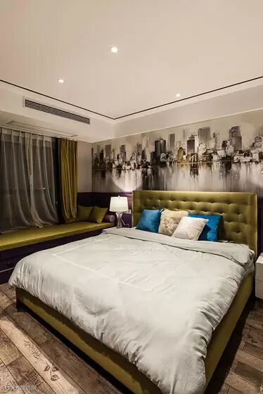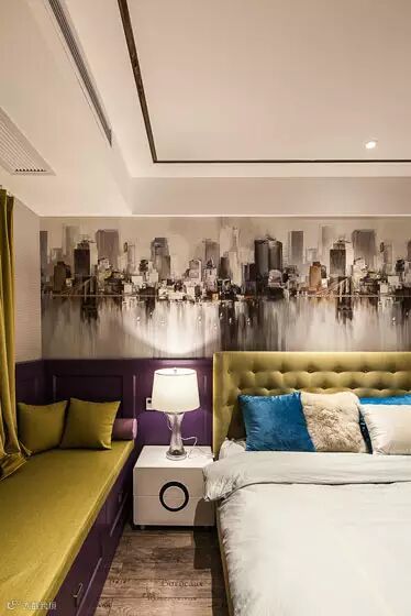 卧室背景墙,是我们都很喜欢的城市之光,每天回家后,可以静静的凝望着这座城市。