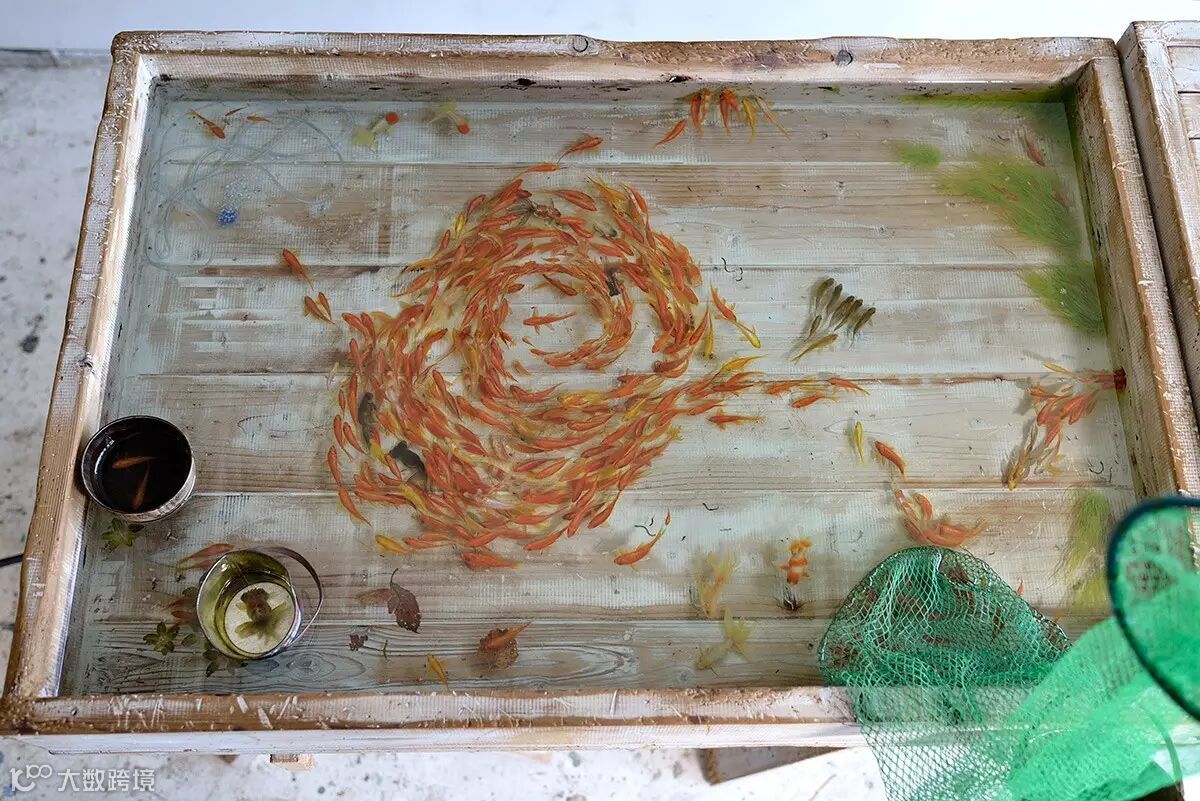 日本艺术家 Riusuke Fukahori 养了好些金鱼,这些金鱼厉害的地方在于可以永生。咋一看上去,你很难相信自己的眼睛,这也太逼真了吧?但 Riusuke 的这些栩栩如生的金鱼,真的是他“画”出来的,利用丙烯酸和树脂涂层等化学材料。艺术家表示,自己想用金鱼和鱼缸来隐喻人类和地球的关系,希望人类能与地球和谐相处。(素材来自 Hi-Fructose)