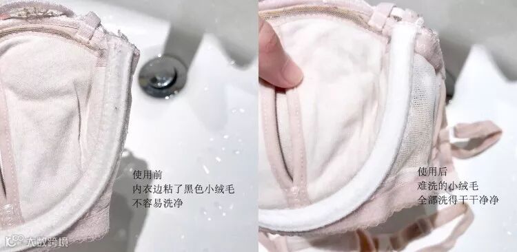 小茉莉特意拿了一件,之前不小心混在一堆衣服中被洗衣机搅了的,沾了很多小绒毛的内衣作对比。