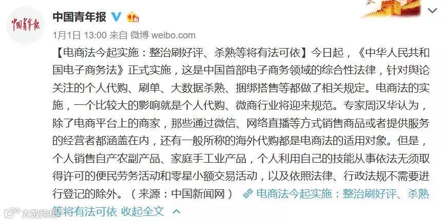 正式开始实施《电商法》