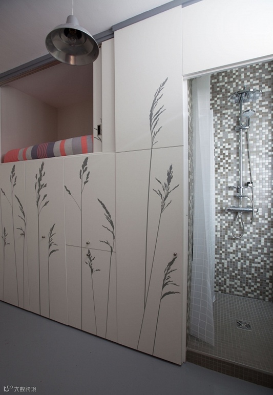 卫生间使用马赛克墙砖打造独特的视觉效果,因卫浴空间实在太小,设计则选择清淡的三配色,从视觉上避免卫浴间过于拥挤,沉静平和。