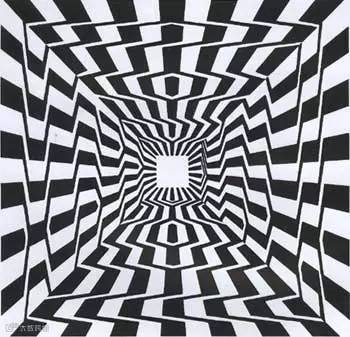 更为奇妙的是,当你的眼睛看成斗鸡眼的时候,只有绿点在动,所有的紫点在一个一个消失。一圈一圈,最后一个也没了!