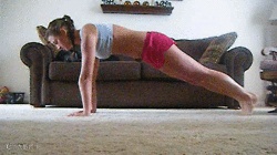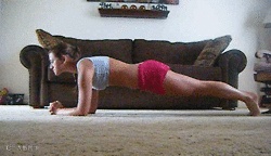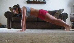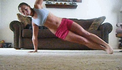 直臂平板支撑+同侧肘碰膝 左右各15个