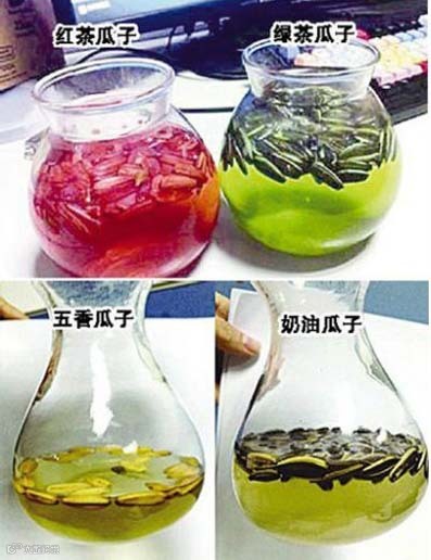 22、【上海电视台:小瓜子隐患多 绿茶瓜子大多添明矾、染色剂】