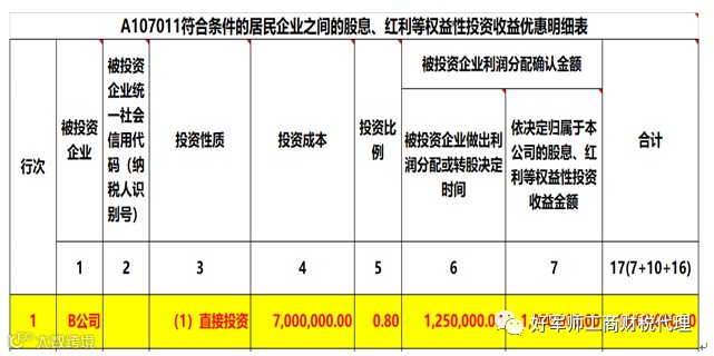 4、由于税法对符合条件的股息、红利等权益性投资收益给予免税待遇,因此只需要填报A107011、A107010申报表来反应投资收益免征企业所得税。